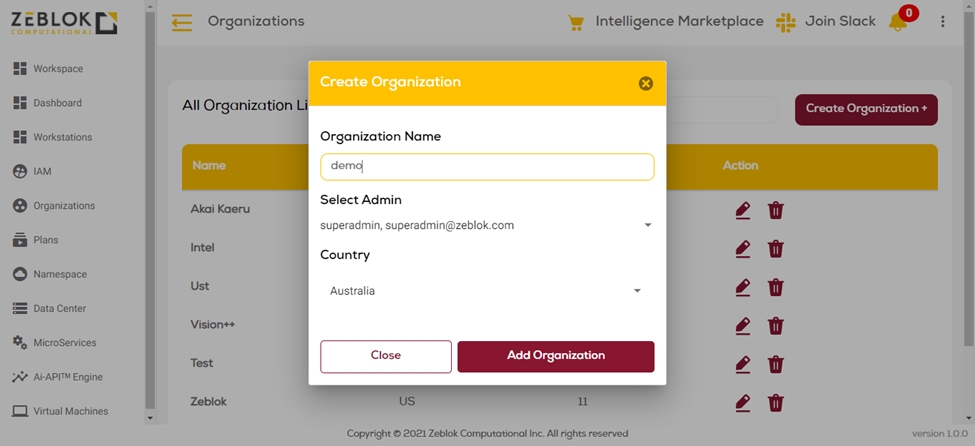 This section shows a list of organizations using the Ai-MicroCloud as a member.