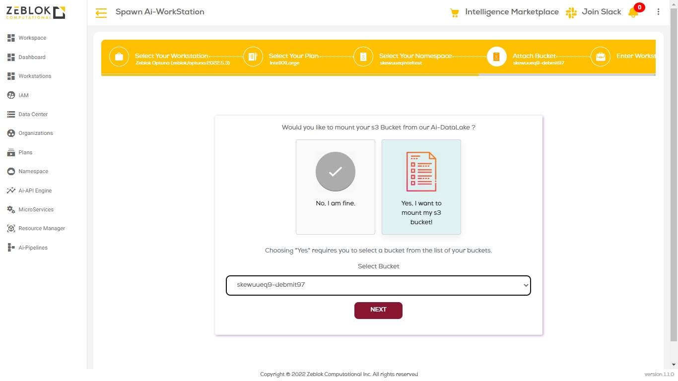 Choose whether you want to mount your S3 bucket from our Ai-DataLake or not.