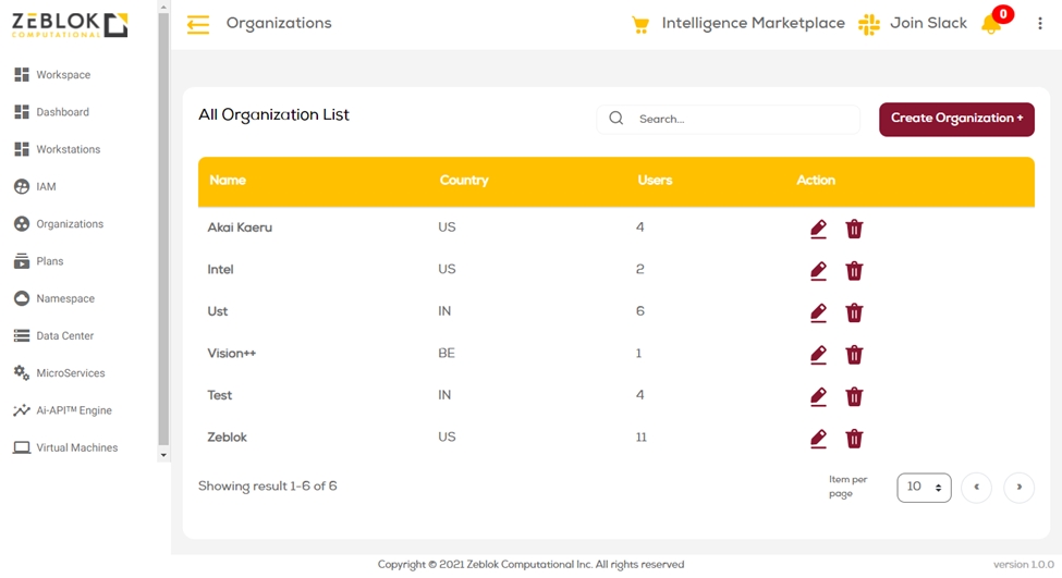 This section shows a list of organizations using the Ai-MicroCloud as a member.