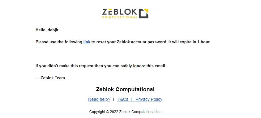 You will then receive an Email on your Email-id you entered in the forgot password link as shown in above image.