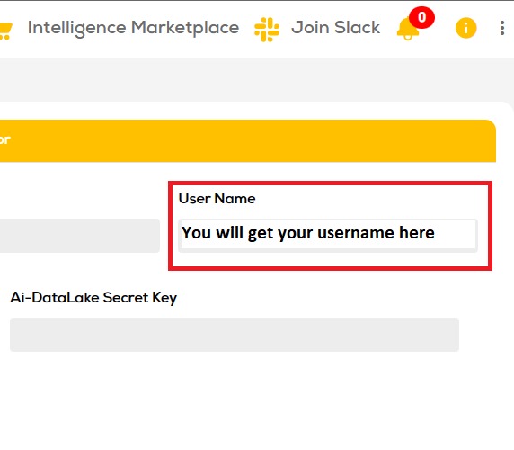 Username: You can copy your user name from the same page you got your Datalake Secret from, Please follow the below picture