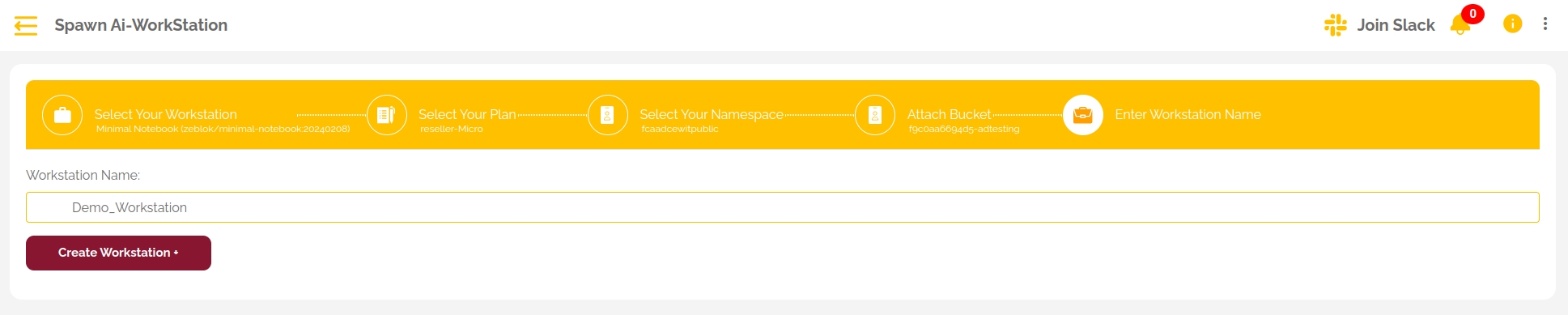 Click on "Spawn Ai-Workstation", you will be redirected to a page as shown below.