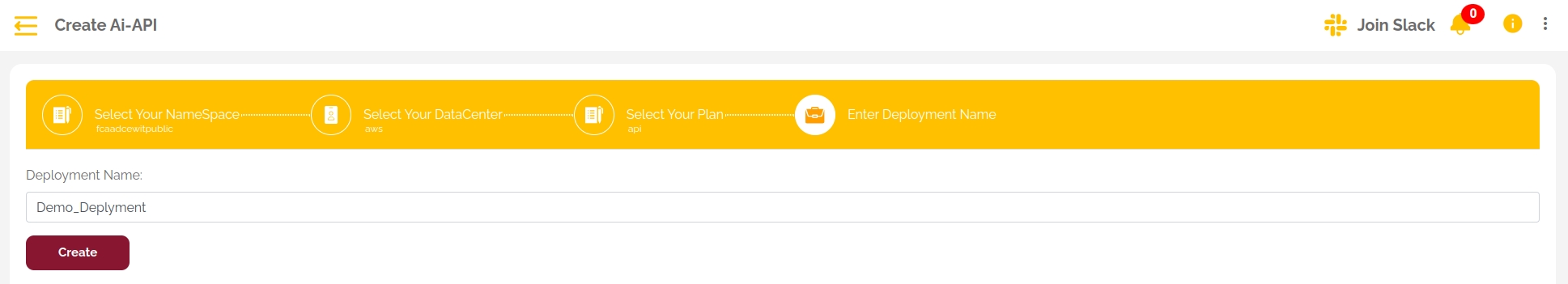 Name your Deployment and click on Create.