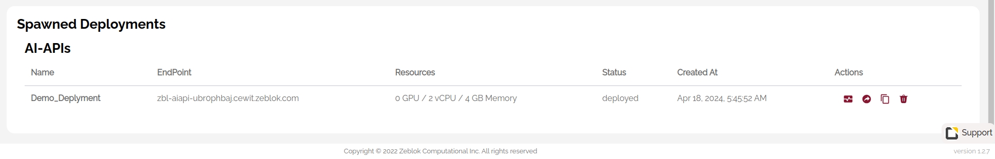 Our Workspace have a Spawned Deplyment section and the sidebar at the left side of your screen has a menu button called Containerization which will lead you to our Ai-APIᵀᴹ Engine, Containerized model status and Pipeline status
