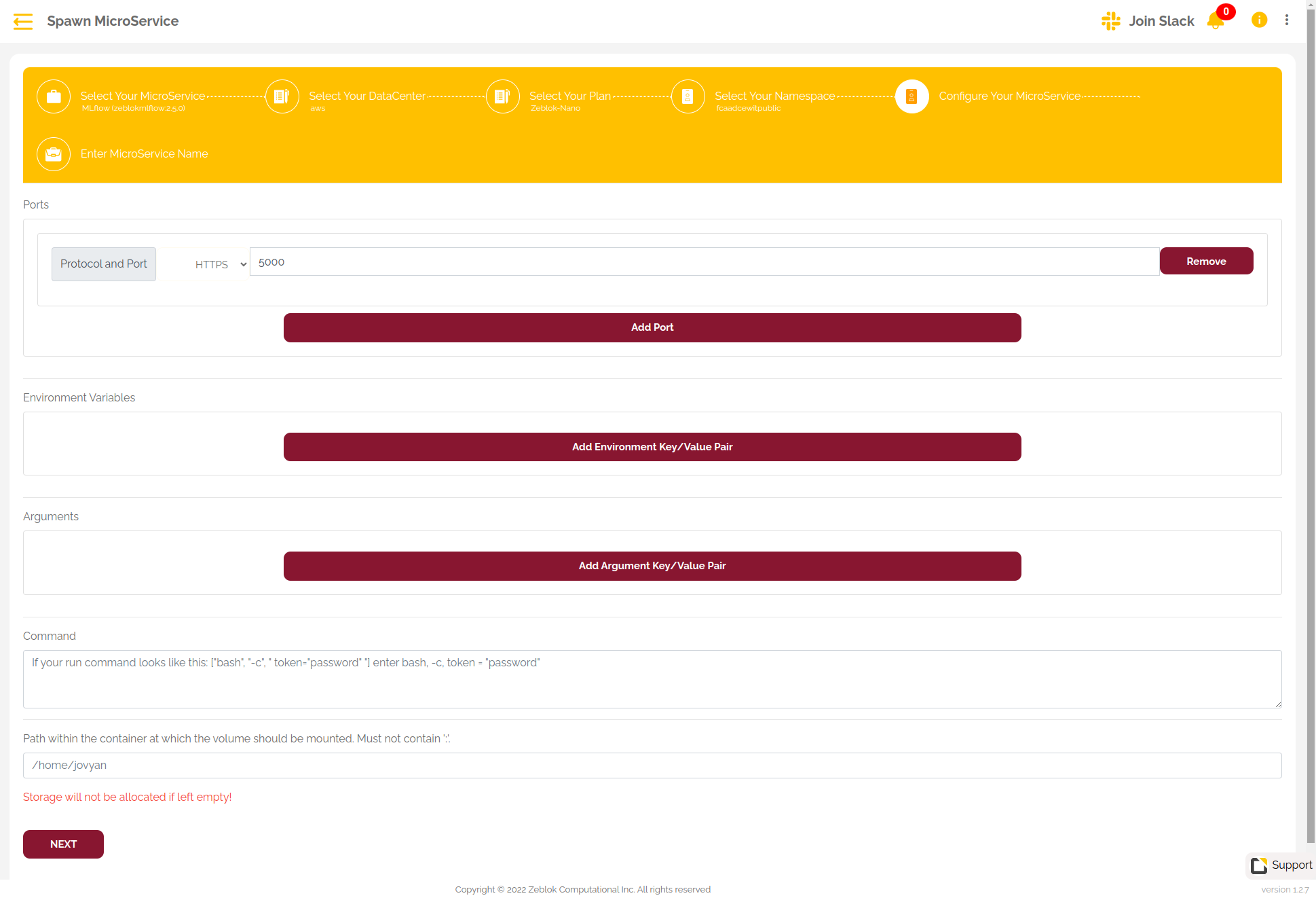 Click on "Spawn MicroService", you will be redirected to a page as shown below.