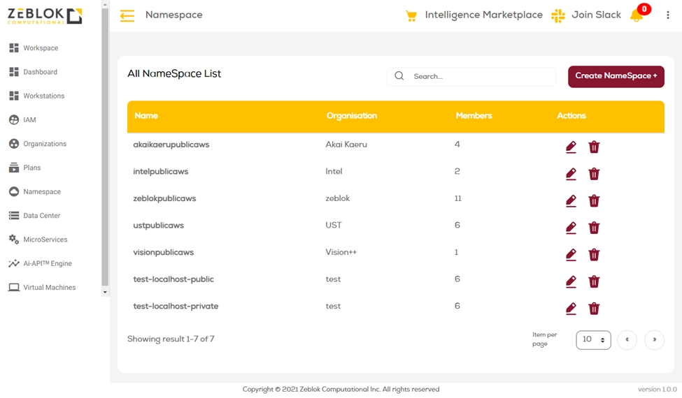 As the name suggests, these are segregated spaces for organization’s activities where the superadmin decides or even the organization admin decides the members of the namespace under which those users can spawn an Ai-WorkStation, MicroService or an Ai-API.
