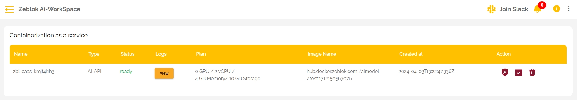 Our Workspace have a Spawned Deplyment section and the sidebar at the left side of your screen has a menu button called Containerization which will lead you to our Ai-APIᵀᴹ Engine, Containerized model status and Pipeline status